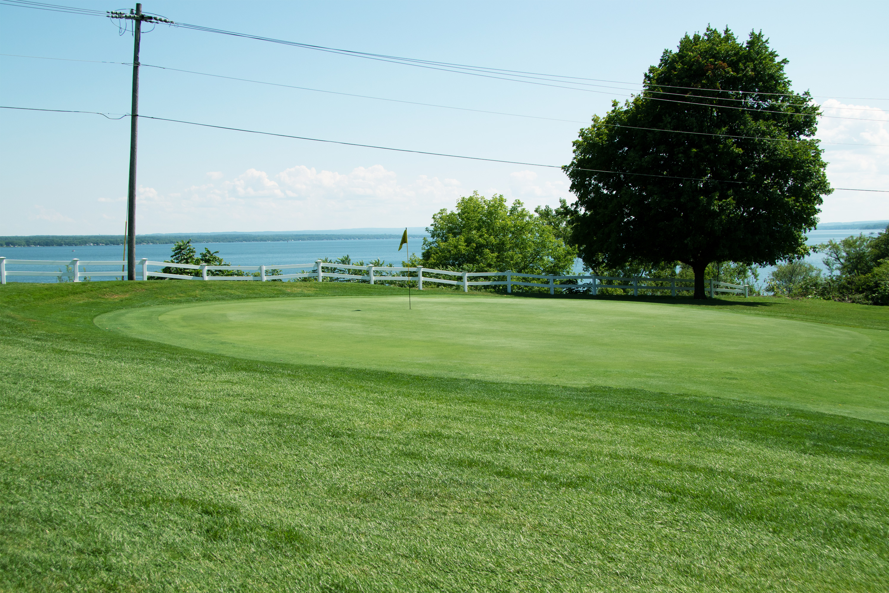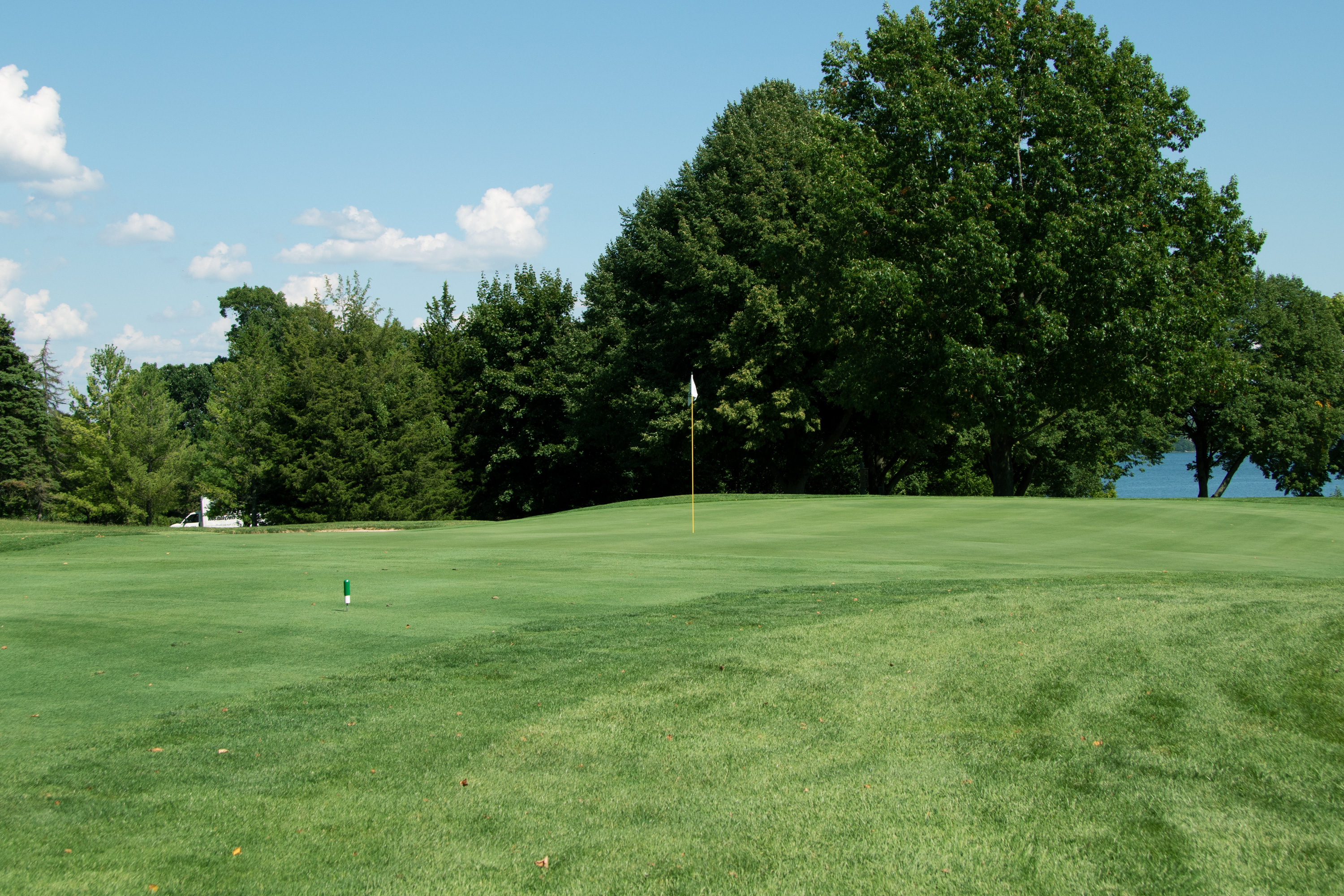 The Geneva Country Club boasts a meticulously maintained 6,014-yard 9-hole course (5,371 for women), requiring players to exhibit precision and accuracy. Its narrow fairways present challenging uphill, downhill, and sidehill lies. Approach shots to the greens often require a keen eye, as many are blind. The greens themselves are fast, undulating, and feature subtle breaks, adding to the course's difficulty. Despite these challenges, the beautifully manicured course offers a rewarding test for golfers. The current course record of 60 is held by Mike Long, set on August 22, 2019, surpassing the previous record of 64 shared by the late Stan Chizinski, William McDermott, and Matt DeJohn. Situated along the north end of Seneca Lake, the course provides stunning views, with many holes featuring the lake as a picturesque backdrop.
